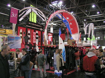 Auffällig dieses Jahr war ,das eine Vielzahl anderer Sportarten in der Surfhalle vertreten waren,wie zum Beispiel Wasserski. Ist aber eigentlich auch kein Wunder, da die Surfhalle sonst recht leer geblieben wäre. Gut vertreten sind im letzten Jahr und in diesem Jahr die Kitesurfer Stände. Allerdings schein sich der Kite-Sport wohl nicht zum Massensport zu entwickeln, wie es das Surfen getan hat. Zur Zeit schein sich jedoch das Windsurfen wieder zu einer Randsportart zu entwickeln. Naja, Windsurfer tauschen halt nicht jedes Jahr ihr Material gegen die neusten Innovationen aus, die der Markt hergibt. Man erinnere sich nur daran, das eine Zeit lang den Surfern suggeriert wurde ,das ein Surfbrett nicht klein genug sein kann und jetzt werden die Bretter immer breiter und haben immer mehr Volumen. Ebenso konnten die Masttaschen auch nicht gross genug sein und heute sind sie so schmal wie der Mast selbst sind.